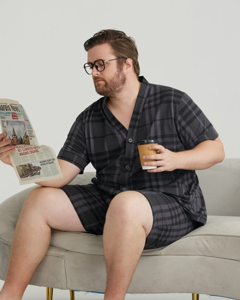 Charcoal Plaid Combed Cotton Short Sleeves Pajamas Set